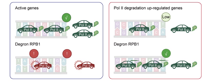 Increased transcriptional elongation and RNA stability of GPCR ligand binding genes unveiled via RNA polymerase II degradation