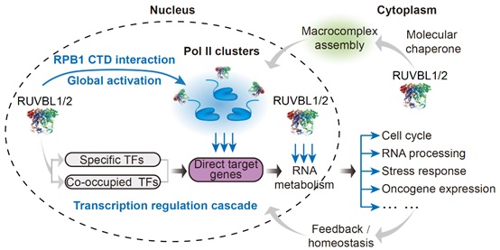 The transcriptional coactivator RUVBL2 regulates Pol II clustering with diverse transcription factors