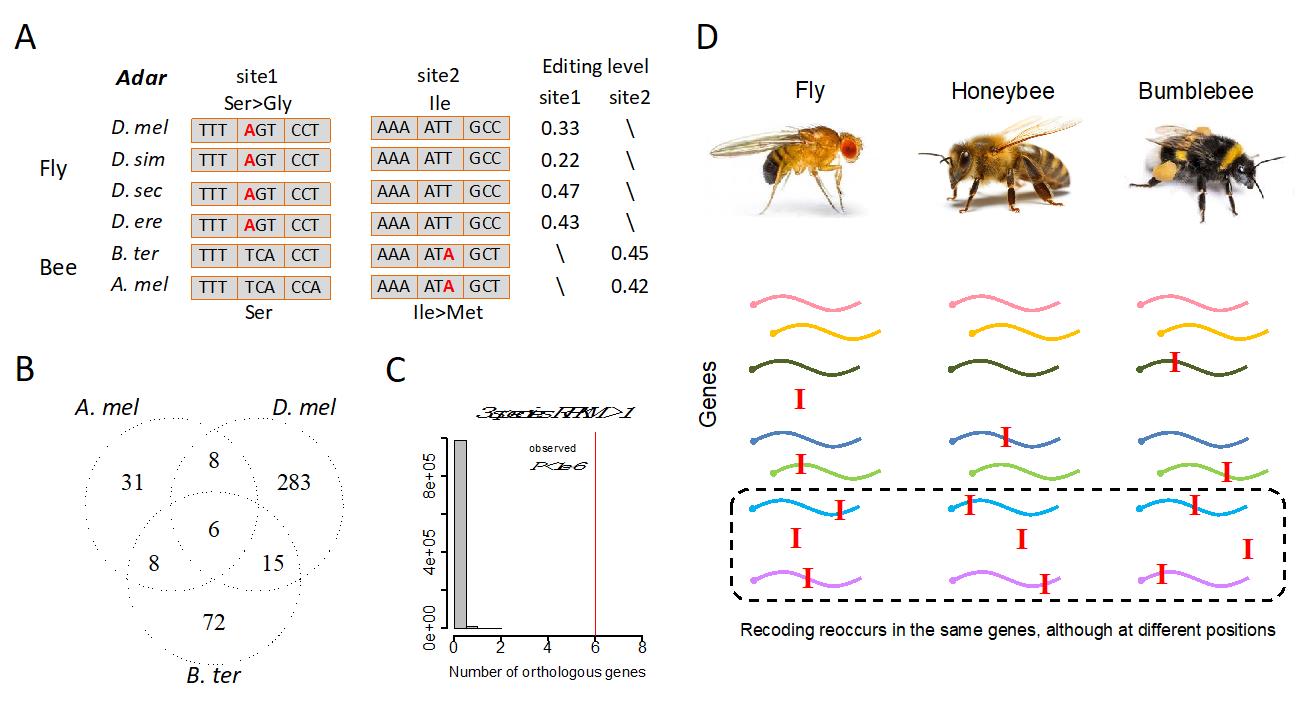 A-to-I RNA editing in honeybees shows signals of adaptation and convergent evolution