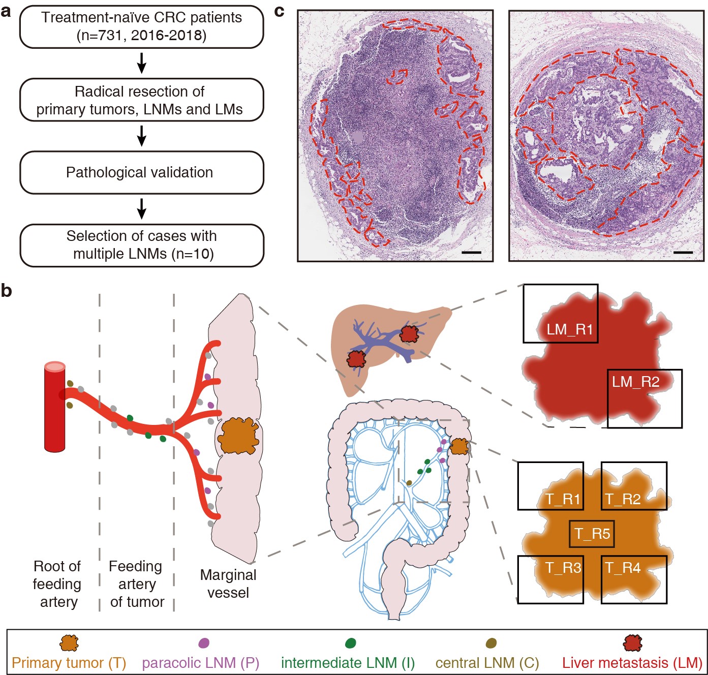 Mapping the spreading routes of lymphatic metastases in human colorectal cancer