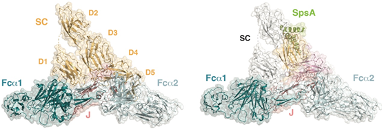 Structural insights into secretory immunoglobulin A and its interaction with a pneumococcal adhesin