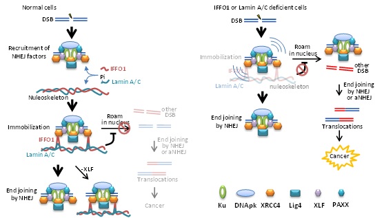 The nucleoskeleton protein IFFO1 immobilizes broken DNA and suppresses chromosome translocation during tumorigenesis