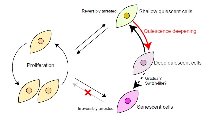 Graded regulation of cellular quiescence depth between proliferation and senescence by a lysosomal dimmer switch
