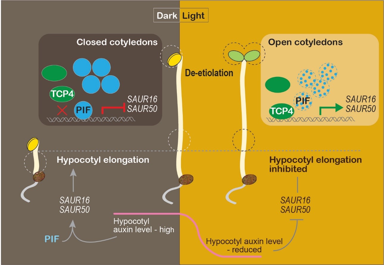 TCP4 and PIF3 antagonistically regulate organ-specific light induction of SAUR16/50 to modulate cotyledon opening during de-etiolation in Arabidopsis