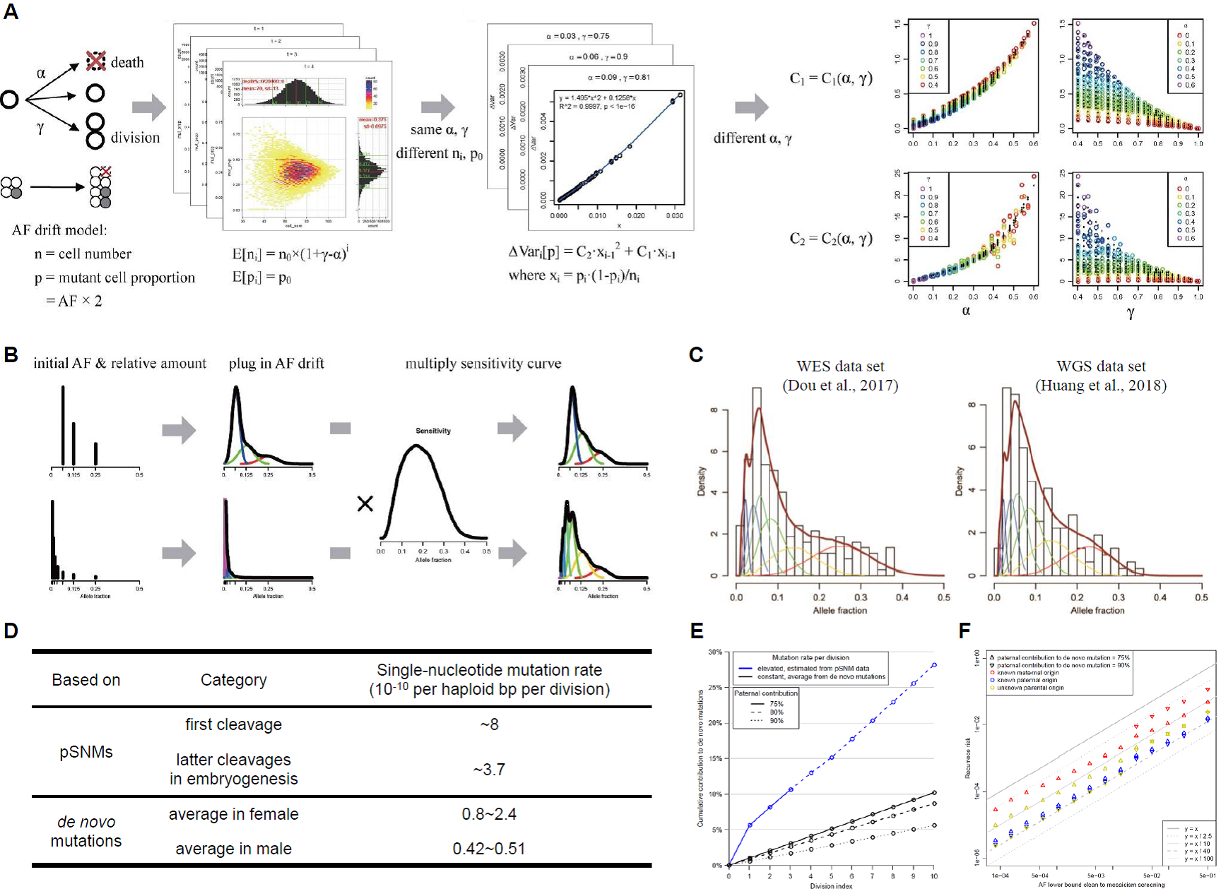 A model for postzygotic mosaicisms quantifies the allele fraction drift, mutation rate, and contribution to de novo mutations
