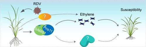 A viral protein promotes host SAMS1 activity and ethylene production for the benefit of virus infection