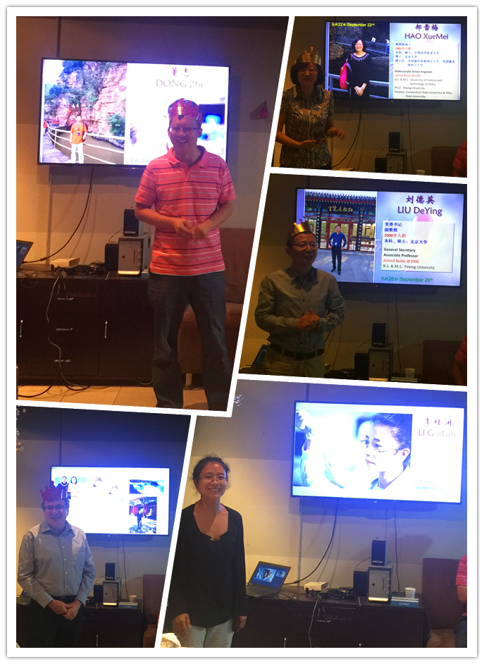 张博教授别出心裁地设计了趣味游戏环节:先让老师们通过照片与简历猜相应的寿星,然后揭晓姓名,并让到场寿星上台自我介绍。老师们还借此机会进行了简单交流,纷纷乐在其中,欢声笑语不绝于耳。