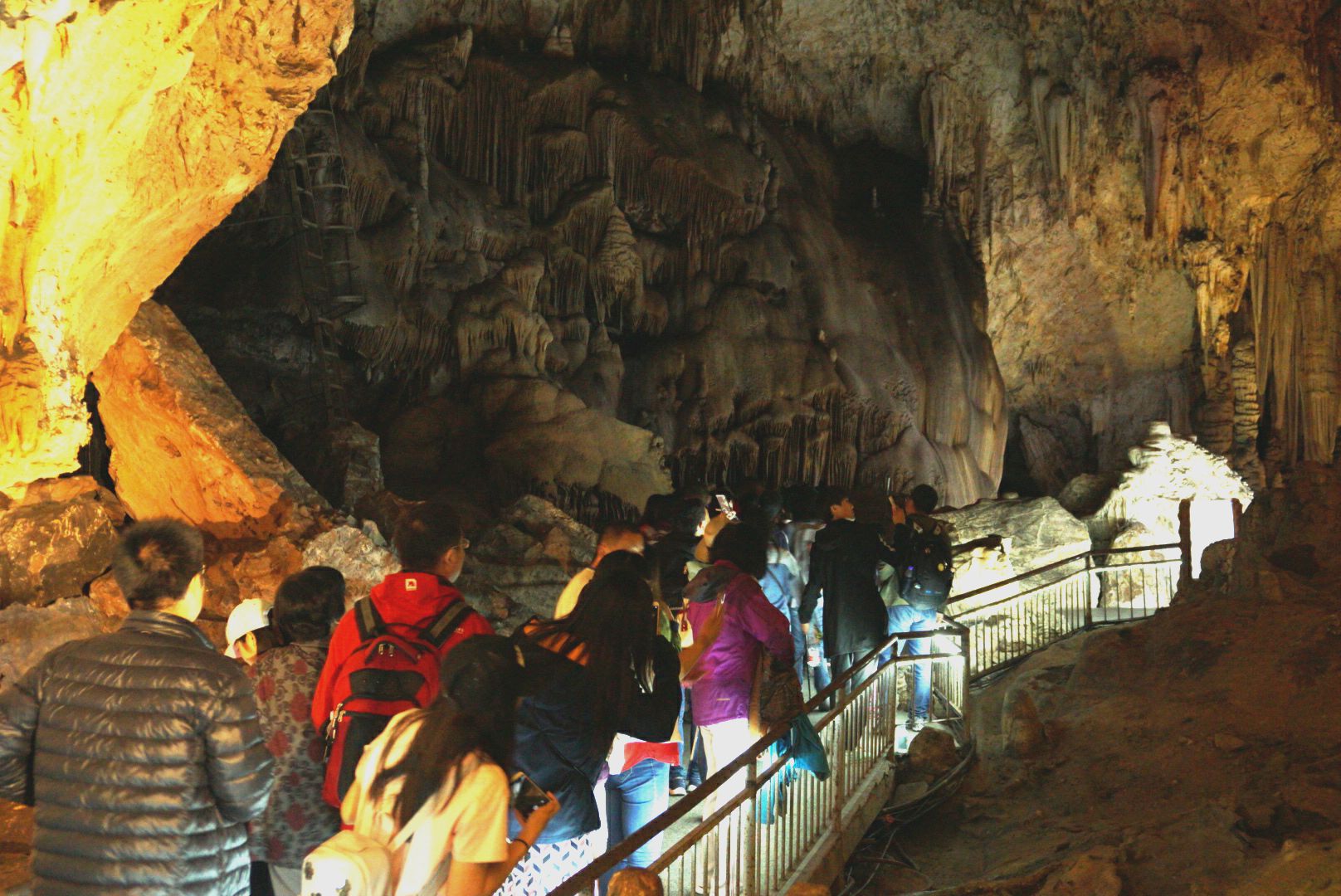 石花洞游览路线全长约2500米,垂直高度130米,洞内常年恒温,凉爽宜人。老师们在参观溶洞美景的同时,又在舒适的环境中锻炼了体魄,身心都得到了放松。