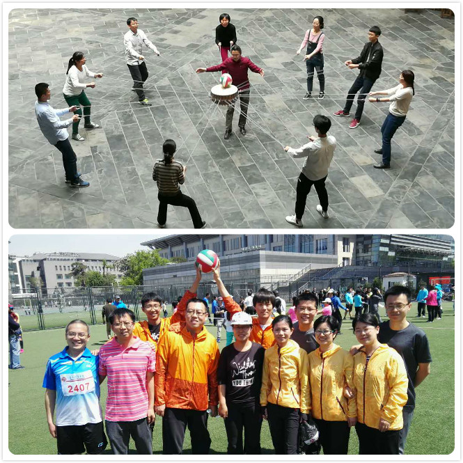 集体项目,包括接力和田径趣味项目,尤其需要组织协调和团队精神。今年生科院的老师们完成了集体项目的全覆盖。在同心鼓项目,老师们的午间集体训练得到了回报,两分钟内,十位老师协力让球在鼓上颠了144次,得到了第六名,这个成绩距离第4名只有5次,距离第一阵营只有35次,同心鼓成为了生科院第一个有实力在第二阵营内站的稳的项目。
