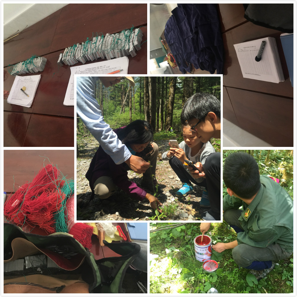 实践活动期间,长期工作在王朗自然保护区的我院保护生物学专家李晟老师及王朗保护区的工作人员们一起热情接待了我院教职工及家属,为教职工和子女们开设了自然课堂,讲解了物种保护中大样地的应用方法及其应用价值。此后,实践团和保护区的工作人员一起进入大样地,进行物种的挂牌、定位、测量和鉴定工作。通过这一活动,老师和孩子们更加直观和生动的感受了动植物强大的生命力,也体会到了保护生物学家们野外工作的辛苦和生物保护的重大意义。