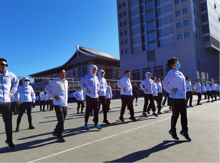 教工团体操,学校共有1584名教工参加,其中生科工会共有30名老师参加。