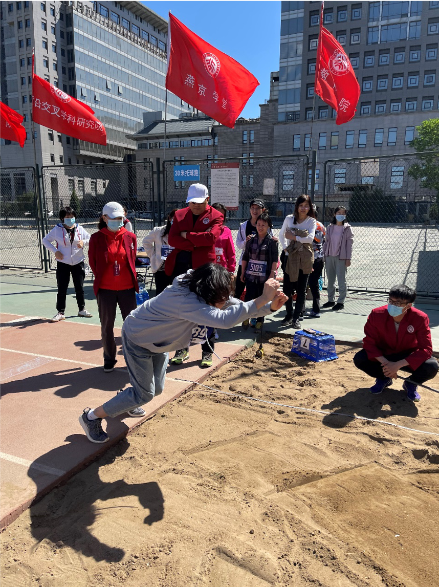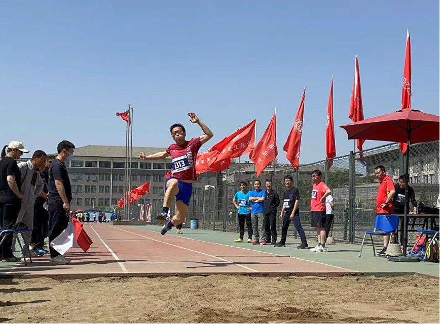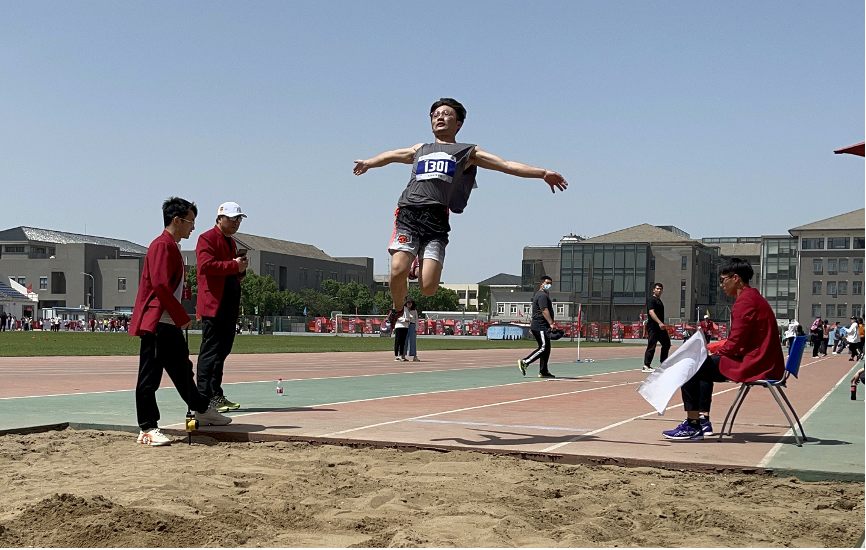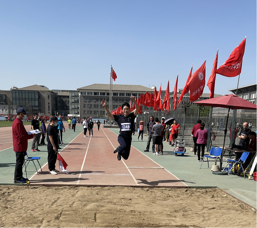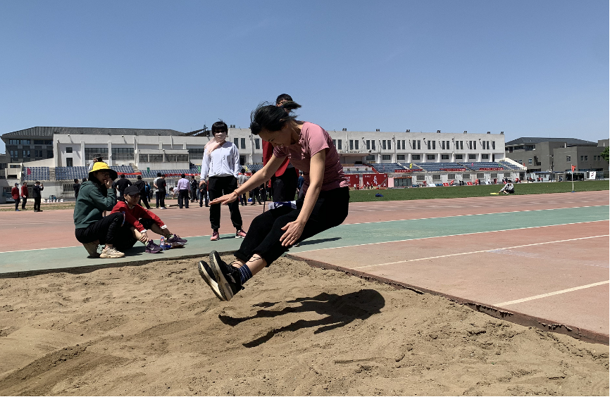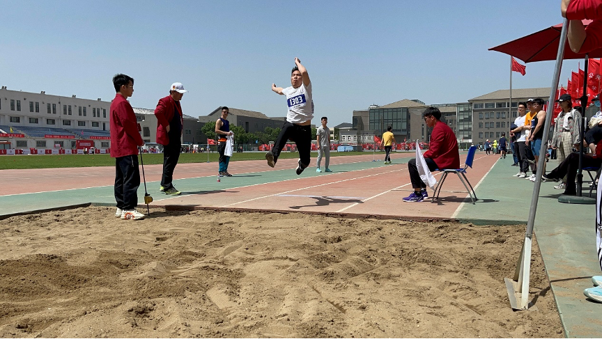 唐平(上)老师在男子C组跳远比赛中分别获得第4名的好成绩。