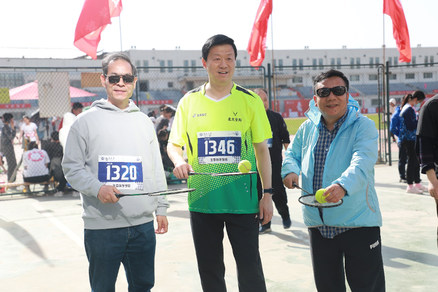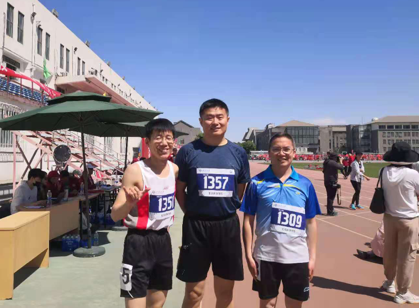 王玉秋(左)老师、赵扬(中)老师和王国鹏(右)老师准备参加男子径赛。