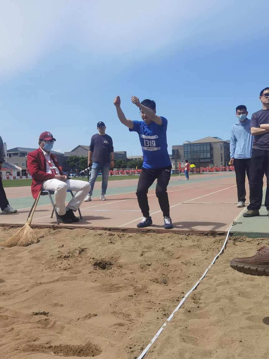 瞿礼嘉老师在男子D组立定跳远和铅球的比赛中分别获得第2名和第5名的好成绩。