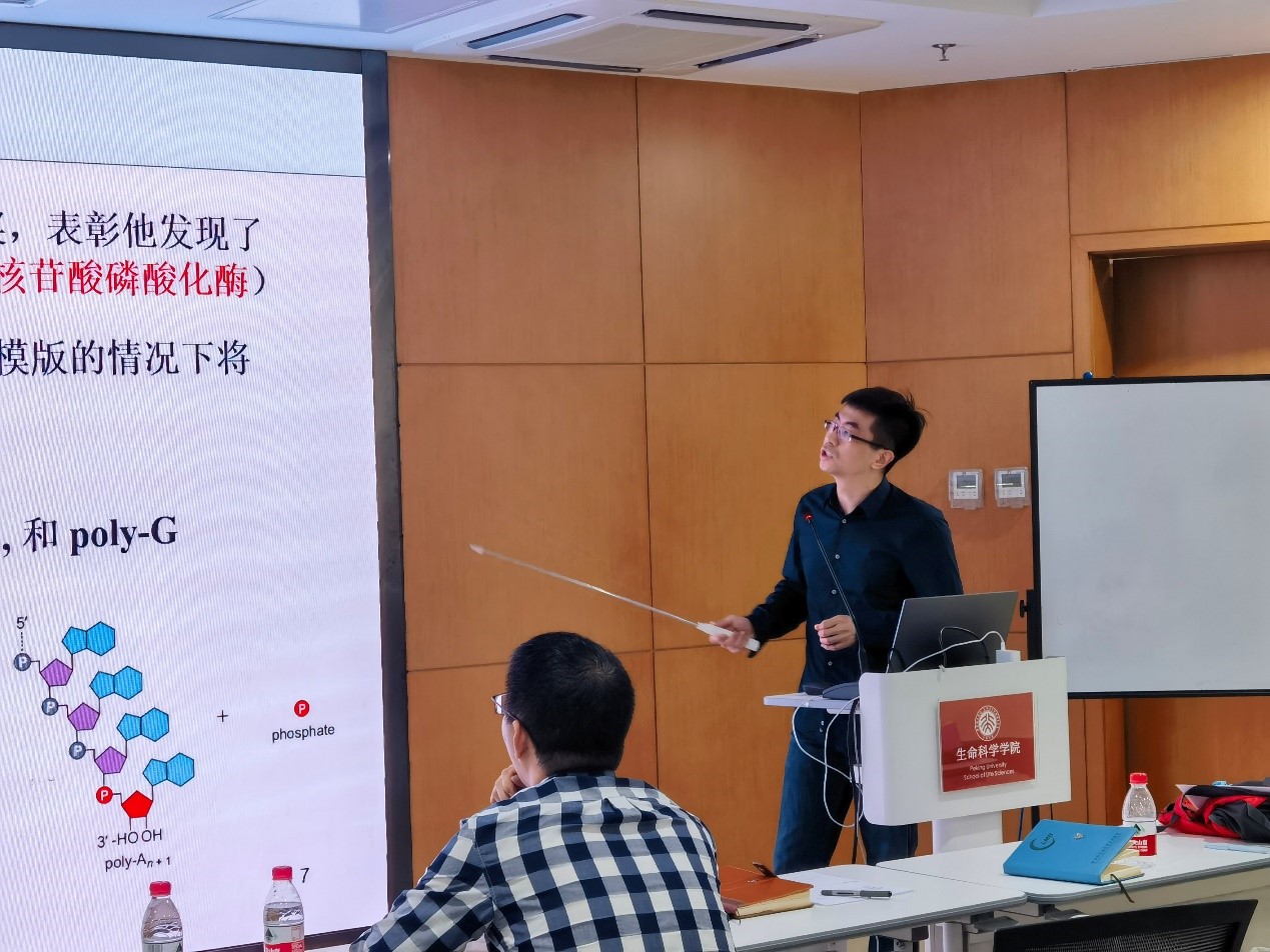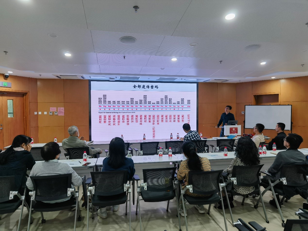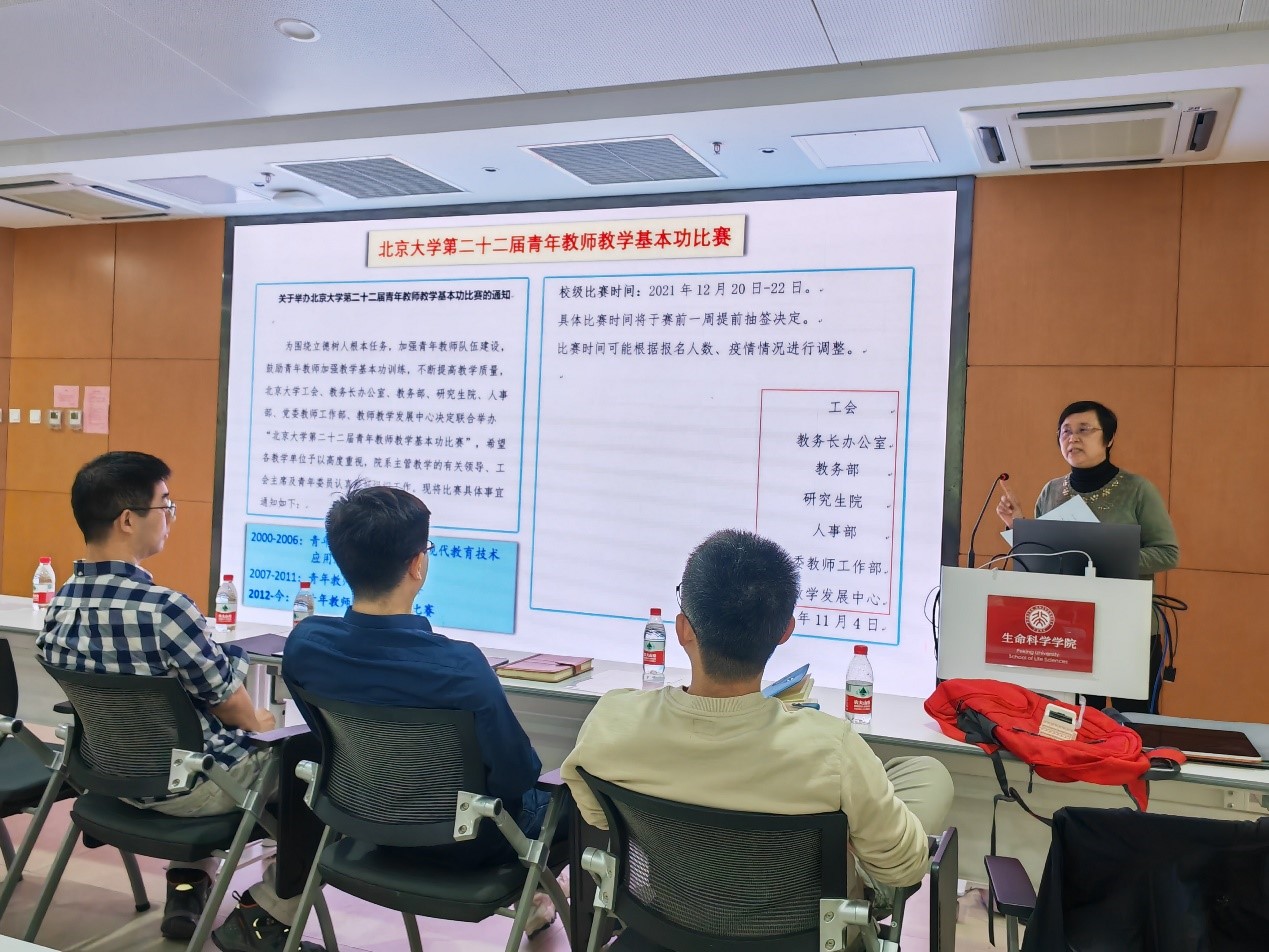学校近期将举办第二十二届(2022年度)青年教师教学基本功比赛,比赛形式为参赛青年教师从所授课程中选取一部分,进行20分钟的现场教学演示,由评委会评选出一等奖、二等奖、三等奖,以及最佳教案奖、最佳教学演示奖、最受学生欢迎奖、课程思政专项奖、优秀指导老师奖、优秀组织奖多种奖项。学院历年均选派了青年教师参赛,并屡创佳绩。此次学院决定选派张哲、张迪和刘轶群三位青年教师参加本届比赛。为了迎接本届比赛并促进青年教师的交流,学院工会和教务办公室于3月10日下午在吕志和楼B101报告厅联合组织了一场青年教师教学研讨会,楼宇办林芳芳老师协助布置了会场。三位即将参赛的老师进行了精彩的现场教学演示,三位老师的指导教师丁明孝、郑晓峰、郝雪梅和秦咏梅莅临指导,顾红雅、朱健、张研、贺新强、李晟、张蔚、辛广伟、郑鹏里、刘敏和范六民老师也到场观摩、指导;张博老师主持会议,工会主席范六民老师进行了总结发言,现场气氛热烈。承担英文版《生物化学》课程的张哲老师首先出场,采用中文授课结合英文课件的形式,以“The three-dimensional structure of proteins”为题,重点介绍了蛋白质的二级结构和三级结构、变性与复性,以及分子伴侣,内容充实,讲述流畅。承担《分子生物学》课程的张迪老师以“遗传密码的破译”为题,围绕“核酸中的遗传信息如何解码成蛋白质”的问题娓娓道来,逻辑清晰,节奏得当;期间穿插科学家和诺贝尔奖的小故事,生动展现了科学发现的精彩历史,增加了课程的趣味性。承担《扫描电镜下的美育实践》课程的刘轶群老师以“课程项目示例”为题介绍如何使用扫描电镜发现生物之美,展示生物之美,并从中体会科研的魅力,给大家带来了一场色彩斑斓的微观视觉盛宴,让大家充分体验到了这门理科与艺术交叉课程的独特之处。台下观摩的老师们在台上的老师演讲时认真听课,积极配合提问与互动;授课结束后,台下的老师们纷纷提出自己的意见和建议,从授课提纲、授课节奏、教具展示、板书准备、提问设定、思政因素融合等多方面为参赛老师出谋划策,会场讨论热烈,笑声不断。两个多小时的研讨会很快就结束了,不少老师仍意犹未尽,继续留下来切磋、交流。演讲的老师和观摩的老师均表示此次研讨会收获很大,期待继续参加类似的活动。张哲、张迪和刘轶群三位老师都表示此次活动增强了他们参赛的信心,预祝三位老师在即将到来的学校比赛中共创佳绩!