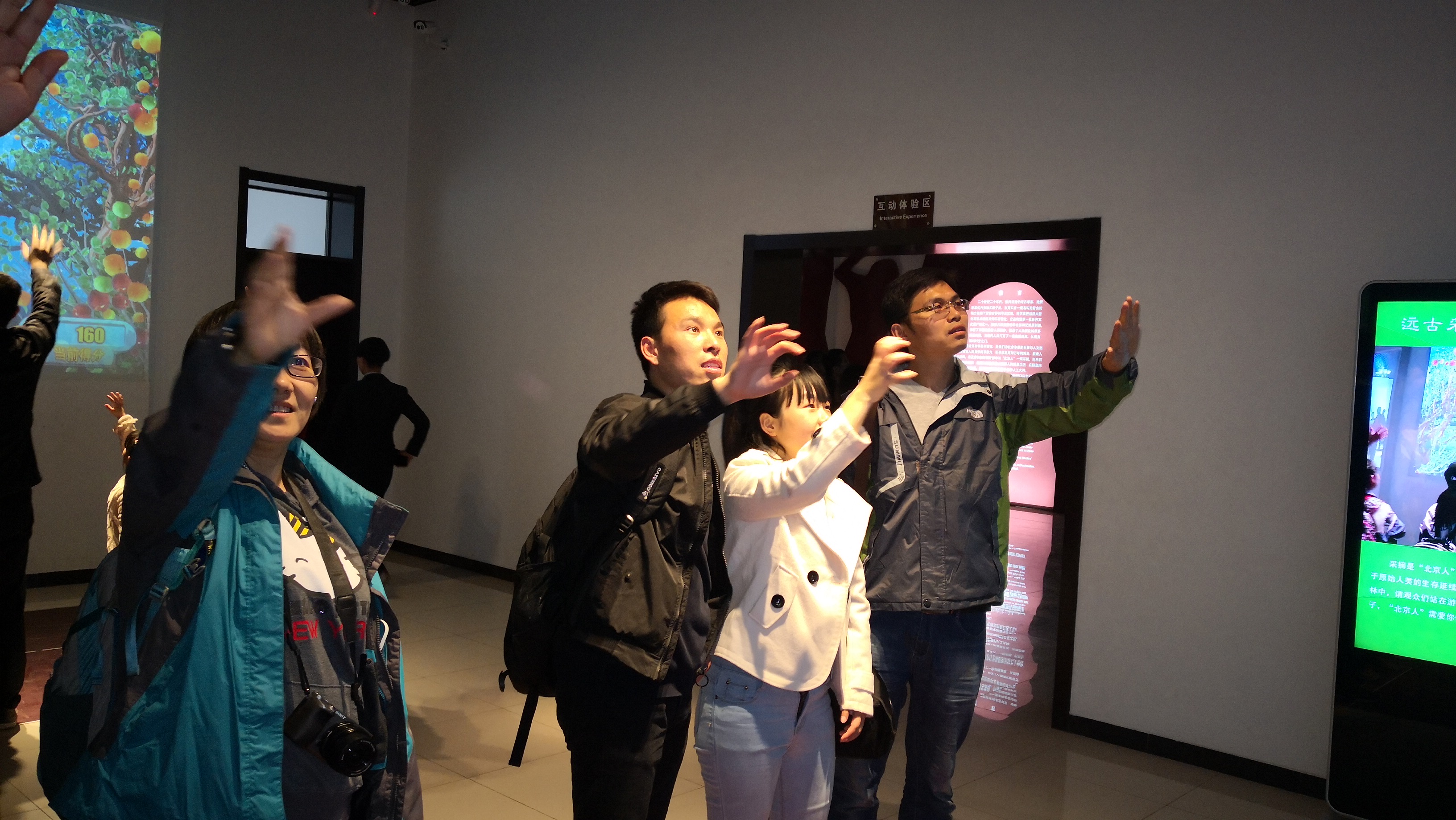 科普体验馆利用投影等技术展现了古人类遗迹,表现了周口店古人类的生活状态。同时馆内的传感、AR和声光电结合等现代技术,让老师们亲身体验了捕鱼、打猎、采摘及与猛兽追逐等原始人类生活。整个过程充满趣味。