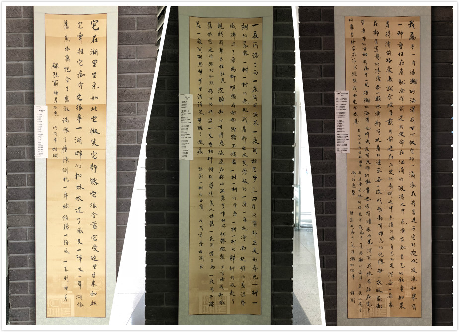 在PA视讯游戏平台官网百廿校庆周,这些以书法形式呈现的学院老师们原创的诗词,在金光生命科学大楼的入门厅处展出,用诗词之美歌颂燕园,为百廿北大庆生,同时也供师生和返校校友们驻足,雅俗共赏。