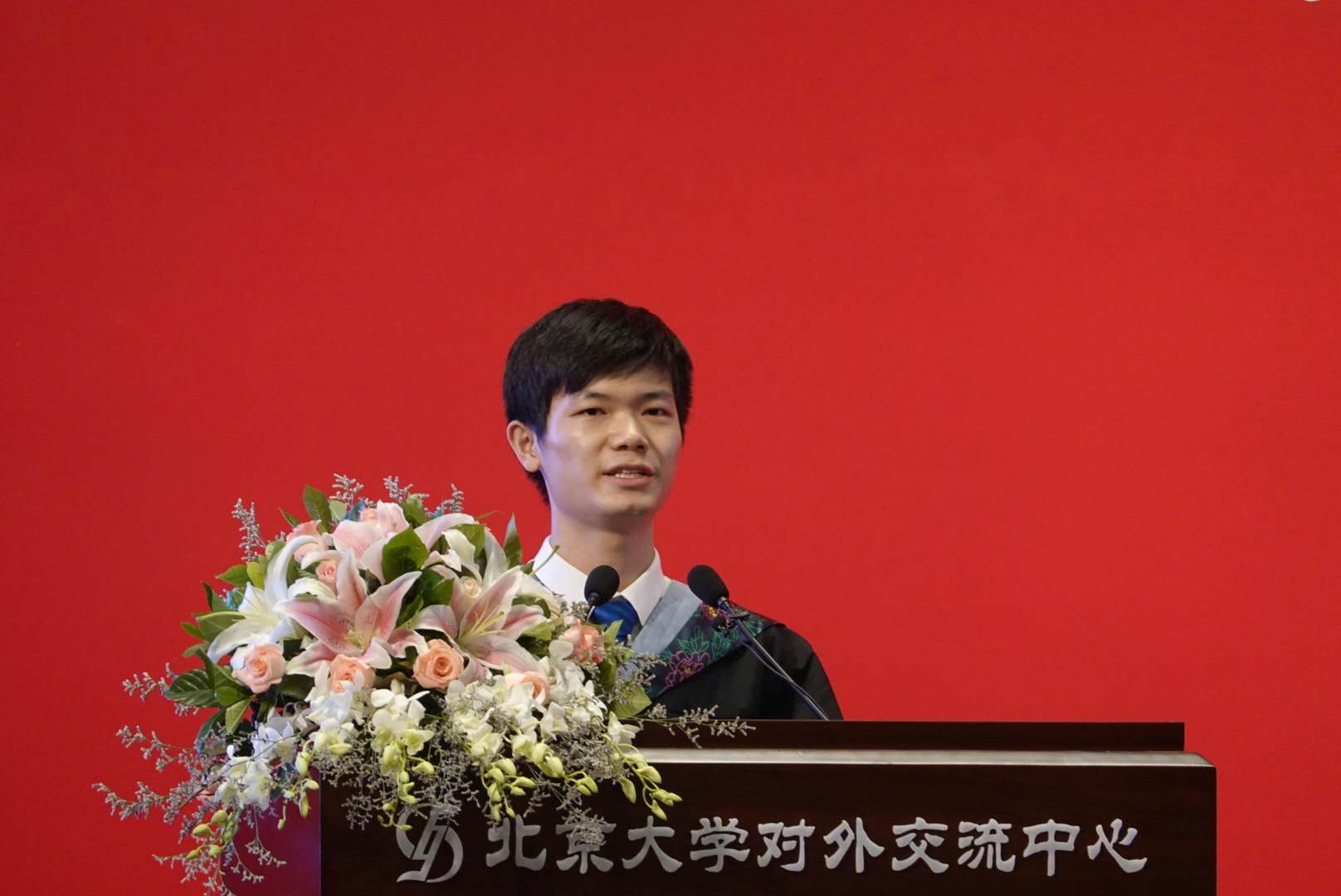 沈同奖获奖者、2019届本科毕业生董梓琪代表全体本科毕业生发言。他回忆了在燕园与同学们一起度过的点点滴滴时光,感谢北大生科为同学们提供的多样化的培养方式和发展道路。他指出畅想未来,无论生科学子立足何处,都要以勤奋严谨求实创新的态度回报社会,在这个充满机遇与挑战、变革与冲突、信心与疑虑的时代,更需要主动承担责任,未必得志后方能兼济天下,以善小而为之更显可贵。