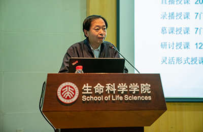 研究生主管副院长郑晓峰就2020年度生科院研究生教育工作进行了总结汇报。在报告中,郑晓峰整体介绍了2020年生科院研究生工作的基本情况,包括2020年度科研获奖情况,招生方案的改革,组织了与国内外专家学者的学术交流活动等。同时,郑晓峰提出将进一步加强研究生过程培养和评价体系,强调了申请博士学位的新要求,并提醒了资格考试的重要时间节点,以及导师对于延期博士生学费及助研问题需要注意的事项。
