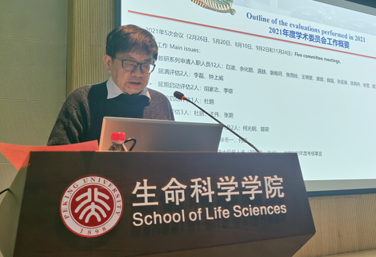 随后,学院学术委员会主任赵进东院士总结了2021年度学术委员会的工作概况,并重点汇报了学术委员会在人才引进、新冠攻关科研进展、学校交办及学院委托等方面的工作。