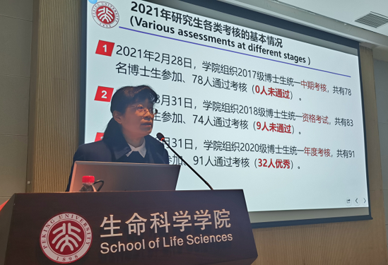 研究生教学主管副院长郑晓峰就2021年度生科院研究生教育工作进行了总结汇报。在报告中,郑晓峰副院长整体介绍了2021年生科院研究生工作的基本情况,展示了研究生培养的重点、亮点及创新工作,并对2022年的工作重点进行了展望。