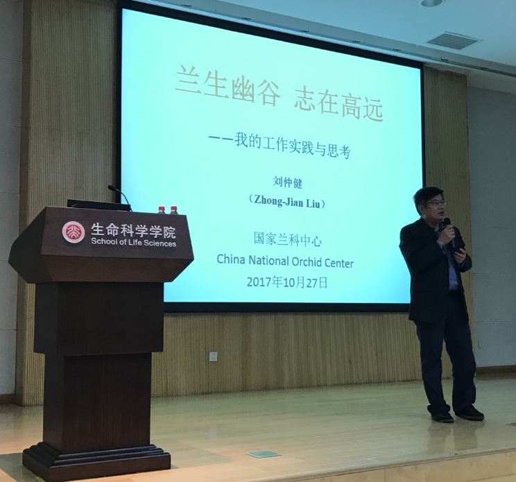 10月27日下午,PA视讯游戏平台官网第七十一期"展望事业,探讨人生” 系列讲座在金光生命科学大楼邓祐才报告厅举办,本次讲座邀请了国家兰科中心和深圳市兰科植物保护研究中心主任,首席科学家刘仲建教授,为同学们做主题为“兰生幽谷,志在高远——我的工作实践与思考”的演讲。PA视讯游戏平台官网全体本科新生和部分研究生同学参与本次讲座。