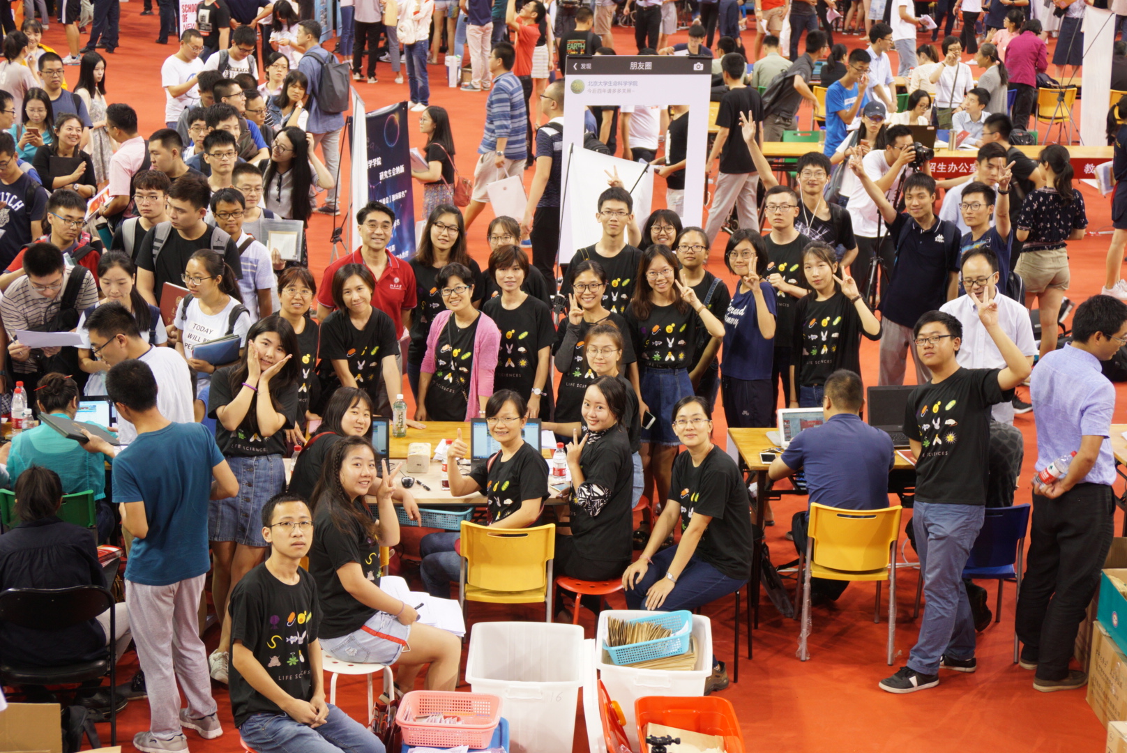 清晨6点,生命学院的老师及志愿者们已经来到了邱德拔体育馆内,开始布置迎新的场地。挂起院旗、调整桌椅、摆放宣传展板,统一身着生命学院院衫的志愿者们分工协作,一切准备工作井然有序,需要派发的各类材料也早早被罗列整齐,静静等待着新主人的到来。