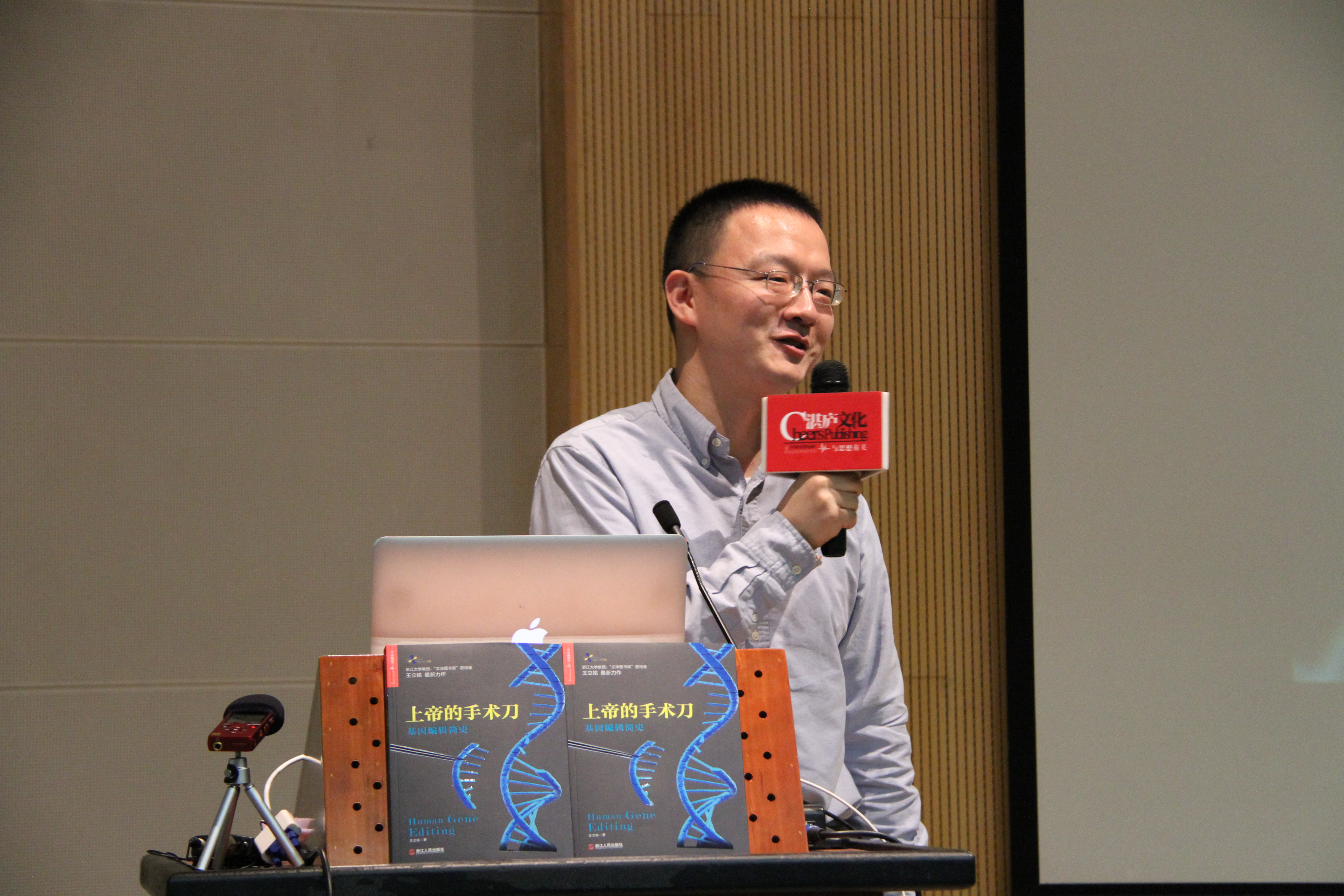 最后,饶毅教授与魏文胜教授一起为王立铭教授的新书《上帝的手术刀:基因编辑简史》举行了新书揭幕仪式。魏文胜教授说,这样一本向大众介绍普及基因编辑技术的新书可以促使公众在面对相关争议时更加科学和理性。