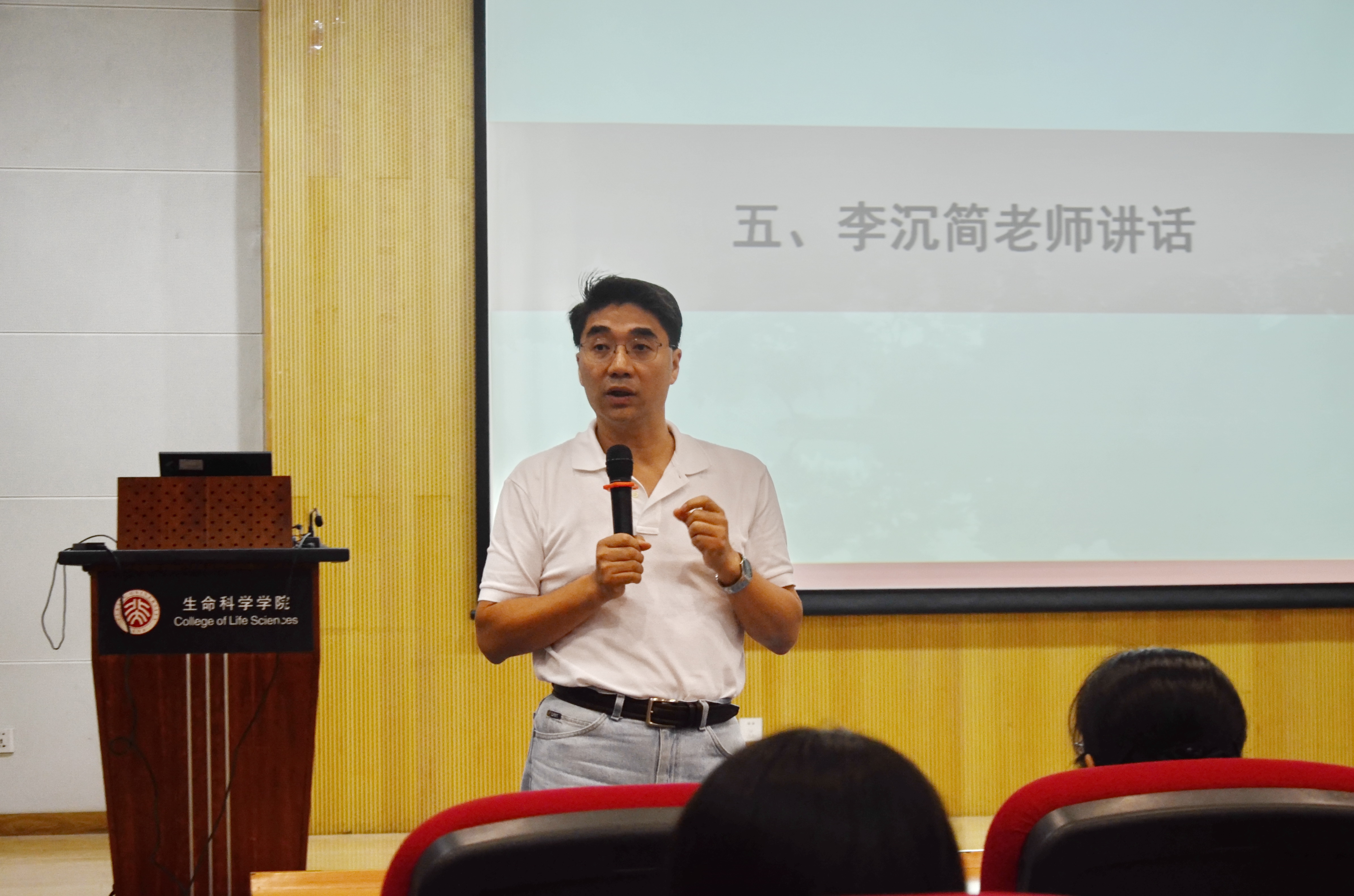 接下来,李沉简老师鼓励同学们在生科的学习中努力奋斗、认真钻研、积极探索、勇于担当。他希望同学们能利用好导师资源,打下坚实的基础。他还介绍了著名的李氏第一、第二定律,以此勉励同学们多付出努力兼得“鱼与熊掌”。