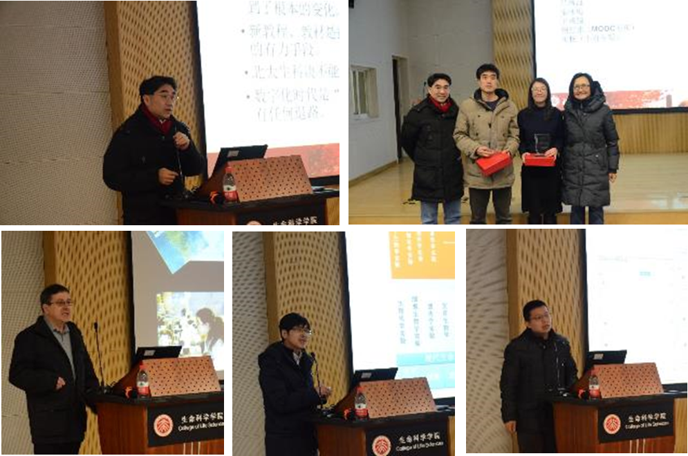 教学研讨会由本科生教学副院长李沉简教授主持。李沉简副院长首先就2015年的教学工作做了简明翔实的报告。PA视讯游戏平台官网在招生工作上力保自主招生的强度和质量,并且针对自主招生录取的学生增设了入学前培训;在教学改革上实现了五大主课双学期开课、中英文开课; 100%实现了本科生一对一导师制;继续完善track制度;MOOC课程继续得到发展和创新,SPOC课程也即将开始;本博直通车项目招生数量由2014年的1名上升为2015年的3名,等等。报告的最后明确提出了下一步本科生教学工作的重点是实验课教学的改革和教材建设。随后,吴虹院长为郑昌学奖教金获得者魏文胜教授和李晴研究员颁发奖杯。在教学改革工作交流环节,John Olson博士为大家介绍了科研导向实验课改革的试验工作,展示了在本科早期开展科研导向的实验课程对增加学生的科研兴趣是有积极影响的。实验教学中心副主任贺新强副教授为大家汇报了实验教学中心近年来的工作,明确了下一步工作目标是推进现代生命科学实验课程改革、进一步做好实验课MOOC建设和选修实验课建设。科学出版社应邀做了新技术教材建设的报告,展示了爱医课等课程APP对于传统阅读学习方式的颠覆。高歌研究员做了MOOC课程进展的报告,2015年的学院MOOC建设进行了改革,将上课时间转变为讨论交流时间,而课下变为自己跟视频学习的时间。