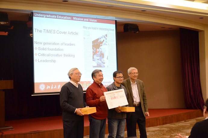 本科生教学研讨以“郑昌学教学优秀奖”颁奖仪式为开场,许智宏院士与郑昌学教授为获奖的于龙川教授和孟世勇老师颁发了奖杯。在“教学与招生两手抓”的主导思想下,主管本科生工作的副院长李沉简老师介绍了学院自主招生的情况,重点围绕本科生教学计划以及track体系方案,就必修基础课、生物核心课程、人文通识课、英文课程等具体问题,与会老师展开了热烈的讨论。2014年引进的外籍讲师John Olson介绍了自己在UCSF的本科课程;顾红雅老师与在场老师交流了自己做MOOC课程《生物演化》的心得。