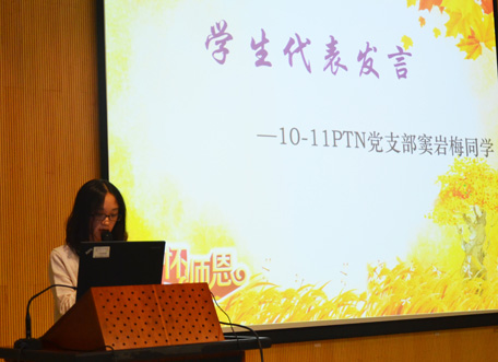 院长吴虹教授最后致辞,她在为全场老师送去节日问候的同时,还就学院发展情况做了简要的汇报,也期待明年90周年院庆时再与大家相聚。