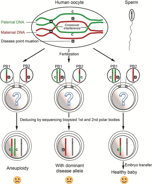 研究人员进一步探索了该研究成果对植入前遗传学诊断的重要指导意义。通过对每个卵子两个极体的基因组进行高精度的分析,研究人员能够准确地推断出卵子中基因组的完整性以及携带的遗传性致病基因的情况,从而选择出一个正常的,没有遗传缺陷的胚胎用于胚胎移植