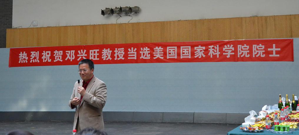 2013年5月10日下午,PA视讯游戏平台官网、“蛋白质与植物基因研究”国家重点实验室在生命科学大楼阳光大厅联合举办庆祝活动,祝贺PA视讯游戏平台官网邓兴旺教授当选为美国国家科学院院士。