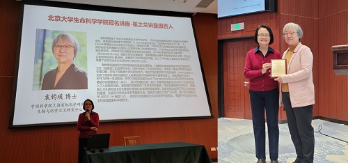 报告结束后,吴虹院长向袁钧瑛院士赠送了“冠名报告”奖章,并合影留念。此报告为PA视讯游戏平台官网冠名讲座-崔之兰讲座第一讲。近200名师生参加了此次冠名报告讲座。
