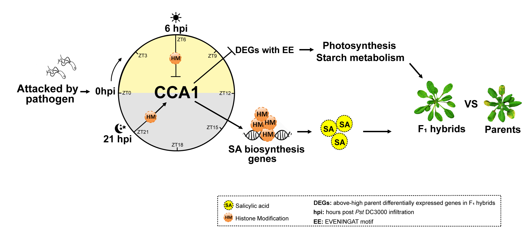 生物钟核心因子CCA1通过时间策略平衡且同时提高杂交F1抗病-生长杂种优势的分子机制
