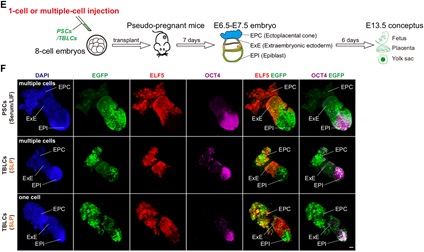 图5 单细胞水平上鉴定TBLCs能够分化到多个胚内和胚外细胞谱系