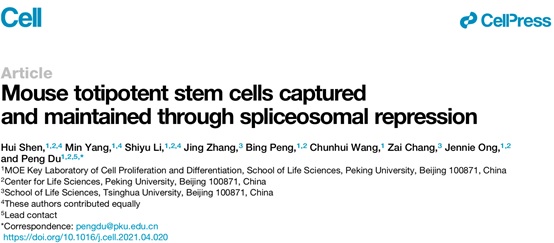 2021年5月14日,PA视讯游戏平台官网杜鹏课题组在Cell杂志在线发表了题为“Mouse totipotent stem cells captured and maintained through spliceosomal repression”的研究论文。在这项研究中,作者通过抑制剪接体,实现了小鼠全能性干细胞的体外建立和培养,且这种细胞在分子和功能上接近体内2细胞和4细胞时期胚胎,因此被命名为totipotent blastomere-like cells(TBLCs)。