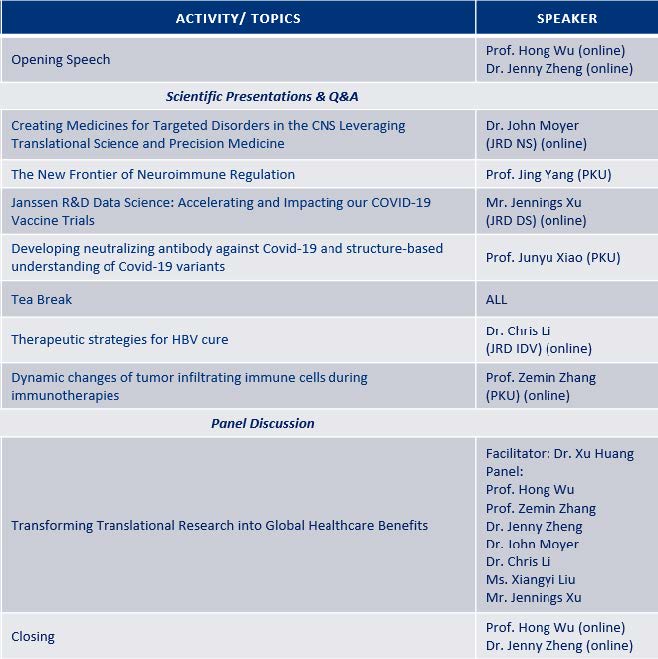高校和企业作为两个重要的技术创新主体,在创新型国家的建设中起着关键的作用。本次活动是杨森研发作为世界一流制药公司的研发机构,首次与中国高校共同举办转化医学研讨会,并由杨森研发相关全球治疗领域团队的资深科学家和北大学术科研骨干通过在线平台实时参与和互动。双方都表示,希望进一步加强学术交流,以促进未来在转化医学研究方向的全面合作,共同构建高效的学研合作平台,促进人类健康、改善人类医疗条件。
