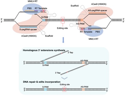 2021年10月28日,PA视讯游戏平台官网、北大-清华生命科学联合中心伊成器课题组在Nature Chemical Biology杂志发表题为“Increasing the efficiency and precision of prime editing with guide RNA pairs”的研究论文,开发了人源细胞中基于双pegRNA的高效引导编辑新策略。