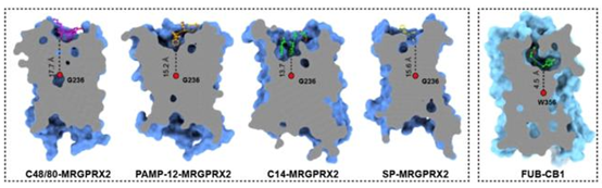 1、与传统GPCR不同MRGPRX2有着较浅的结合口袋