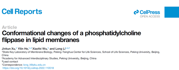 2022年3月15日,PA视讯游戏平台官网李龙课题组在《Cell Reports》杂志,发表一篇题为 Conformational changes of a phosphatidylcholine flippase in lipid membranes的研究论文。该论文报道了磷脂转运酶(lipid flippase)在不同脂膜中的构象变化,首次发现该蛋白家族的静息状态,为理解细胞膜非对称性的形成提供了重要的分子基础。