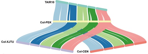 Col-PEK 组装补全了所有着丝粒序列及绝大部分其它缺口,纠正了之前的错误组装。对其初步分析展示了重复序列的分布规律,并揭示了一批新基因。Col-PEK 参考基因组为国内外植物学科研工作者提供了新的参照序列和重要数据资源。