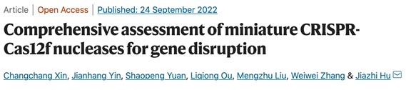 3. Wu, Z. et al. Programmed genome editing by a miniature CRISPR-Cas12f nuclease. Nat Chem Biol 17, 1132-1138, doi:10.1038/s41589-021-00868-6 (2021)