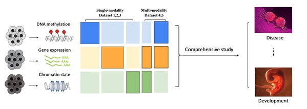 细胞中的生物过程涉及到DNA、RNA、蛋白质等多种不同层次的调控,它们相互影响,共同发挥作用,因此,整合不同组学数据对应的多模态信息是全面表征细胞生理/病理状态的前提与关键。