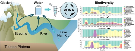 受气候变化的影响,全球的冰川正在迅速消融,直接影响地球淡水资源供给、冰冻圈生态系统功能以及冰川生境的生物类群。然而,传统调查方法难以获得全面的生物多样性数据,因此尚不清楚冰川影响下水文连接的多种生境中不同生物类群的分布和组成变化。新兴的环境DNA(eDNA)方法利用分析生物释放到环境中的DNA检测生物分布和群落构成,极为利于在偏远地区和恶劣环境中进行无损伤性的生物多样性研究。