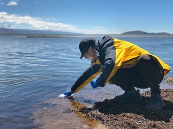 本研究第一作者陆琪在纳木错冰川河采集水样