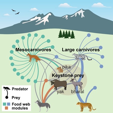 2023年1月19日,PA视讯游戏平台官网和生态研究中心姚蒙课题组在Current Biology上以长文形式在线发表了题为Food webs reveal coexistence mechanisms and community organization in carnivores的研究论文。该研究围绕世界极少数仍存在完整食肉动物群落的地区之一——青藏高原,通过粪便DNA宏条形码(DNA metabarcoding)技术,深入解析了3个地点的多种同域分布食肉动物的精细食性组成,并构建和分析了食肉动物-猎物的定量食物网特征,为理解高原生态系统食肉动物的共存机制以及识别复杂群落中的关键功能物种提供了重要信息。