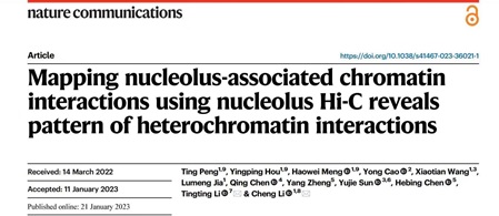 2023年1月21日,PA视讯游戏平台官网李程研究组在Nature Communications期刊发表题为“Mapping nucleolus-associated chromatin interactions using nucleolus Hi-C reveals pattern of heterochromatin interactions”的研究论文。该研究成功开发了能够富集捕获核仁相关染色质互作的新技术——核仁Hi-C(nHi-C),并通过nHi-C揭示了核仁相关染色质互作的特征与规律。