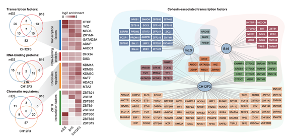 图1. 不同细胞类型的Cohesin相关蛋白质组鉴定到的一系列潜在调控因子。